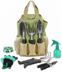 Hot Colorful confezione da 9 pezzi Kit di attrezzi da giardinaggio per impieghi gravosi borsa a portata di mano pala forchetta rastrello potatura cesoia spruzzatore escavatore Set di attrezzi da giardino